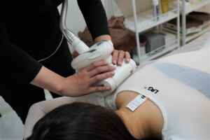 エンダモロジーと並んで人気の施術が「サーモシェイプ」。『B again』では、エンダモロジーと組み合わせた施術が一番人気があるそう。サーモシェイプとは、強力なラジオ波を用いて肌の最深部を41.0℃以上に加熱し、代謝活動を促す施術です。