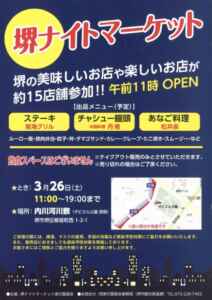 堺ナイトマーケットが 3/26(土曜)に開催されます!