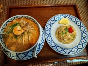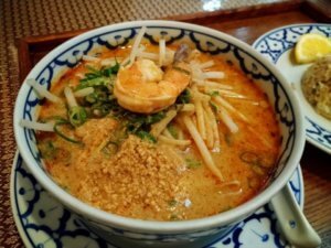 トムヤンクンラーメンは辛くなく、ココナッツミルクが程よく香るまろやかな味でした。