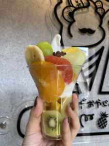 実際に見ると大きくて量も多いのですが、ビタミンたっぷりフルーツのフレッシュさと、あますぎずなめらかなソフトクリームが吸い込まれるように口に入っていくので、ぺろっといけちゃいました♪